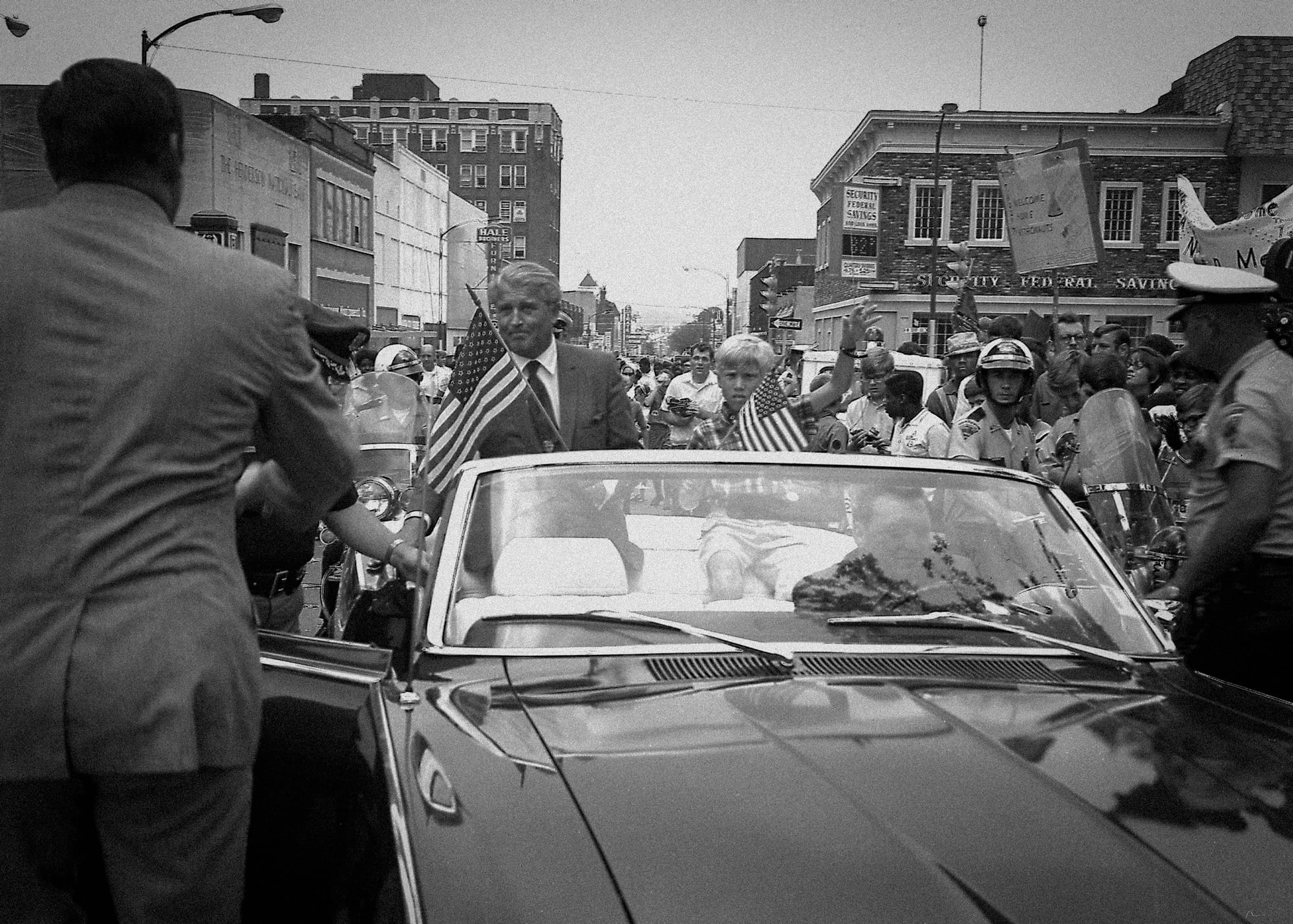The regard in which he was held locally combined, in July 1969, with the enormous enthusiasm generated by coverage of the luar landings. Here von Braun can be seen as the focal point of a patriotic parade.
