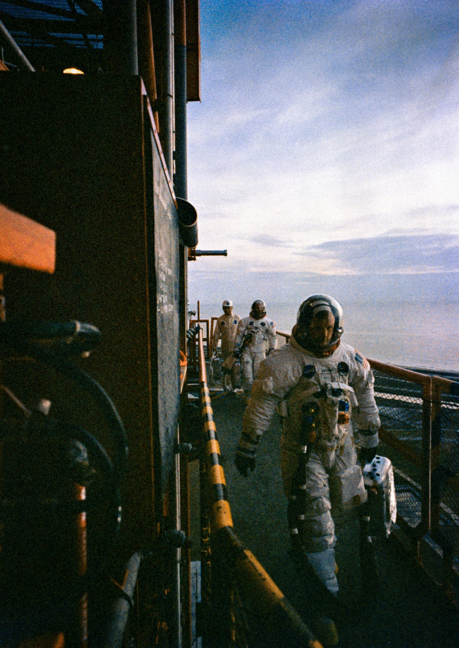 For Collins, carrying his oxygen container to the launch pad felt rather like hauling a suitcase. After the transfer van and elevator ride up the rocket, he was struck by a vivid thought: