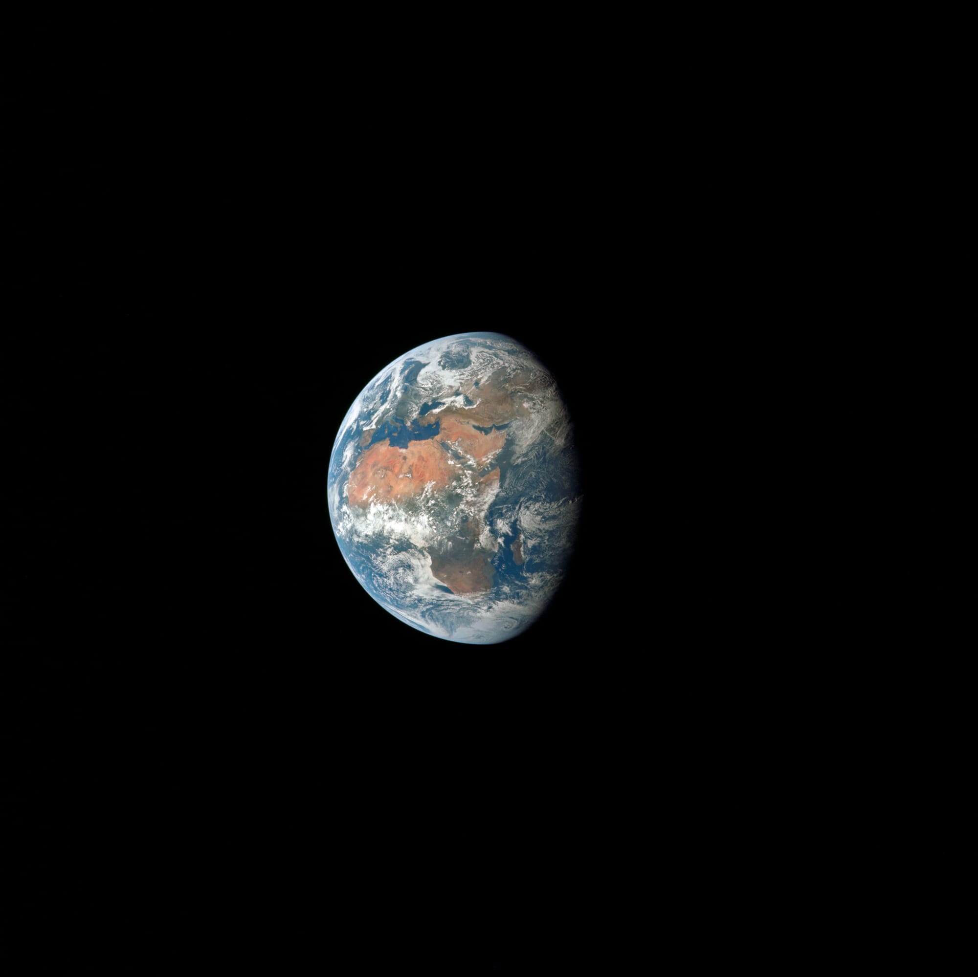 On 17 July Collins was among the stars. But rather than looking towards them, he found himself frequently glancing back at the planet that he was leaving behind. This spectacular photograph, taken during the journey to the Moon, shows parts of Africa and Europe.