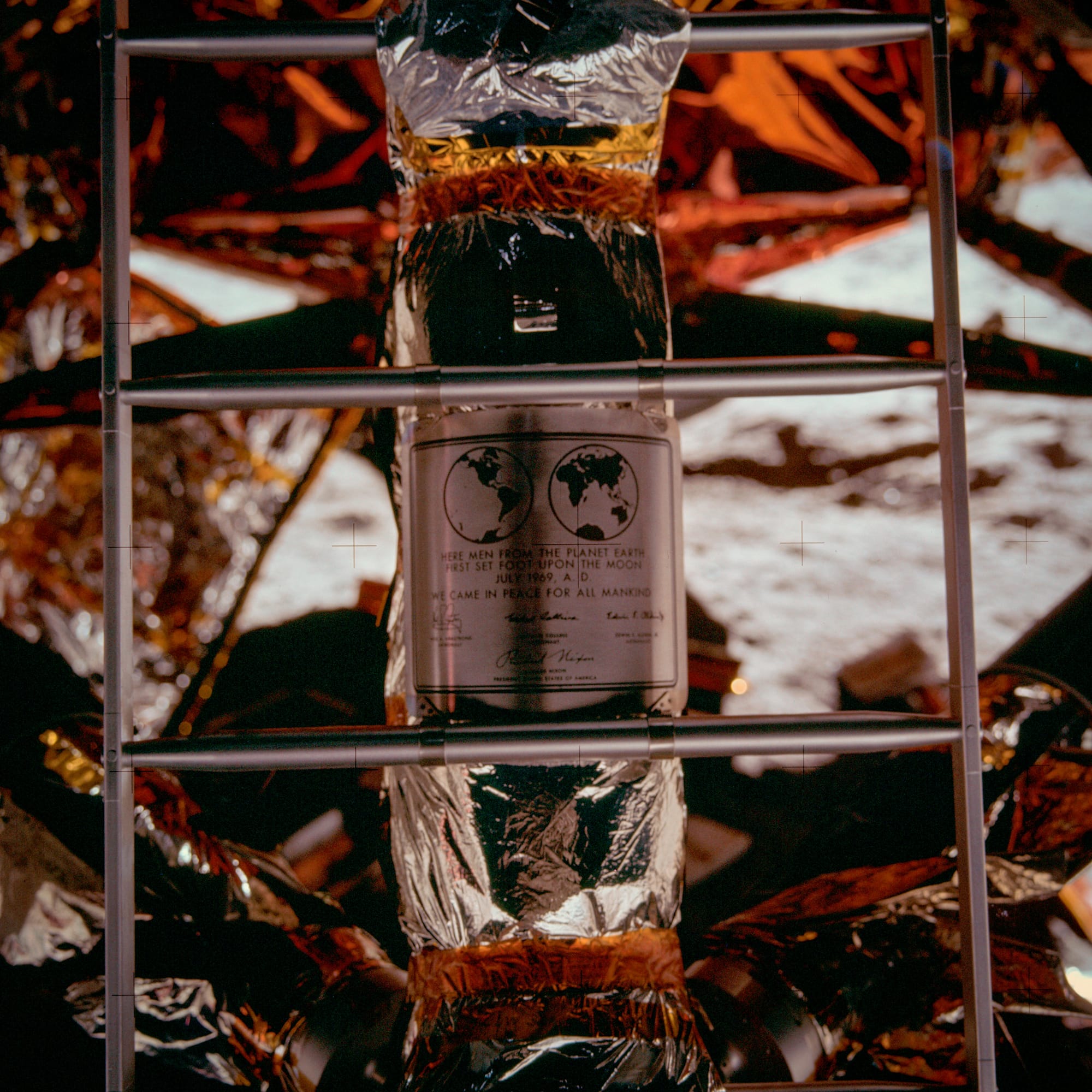 Here men from the planet Earth first set foot upon the moon, July 1969 A.D. We came in peace for all mankind.