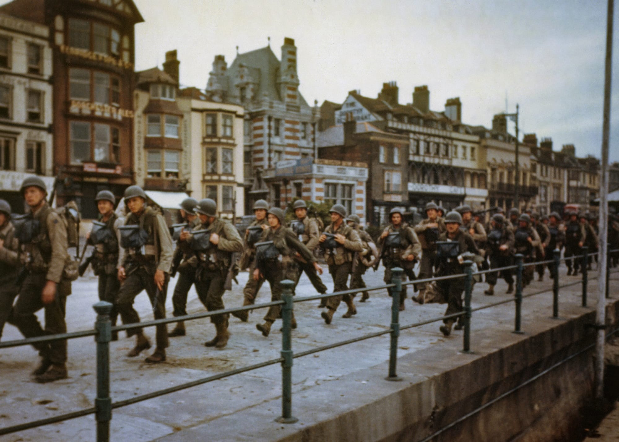 Mark Barnes: Men of Lieutenant Colonel James E Rudder's 2nd Ranger Battalion march along the seafront at Weymouth, having travelled a few miles from their staging area at Broadmayne.