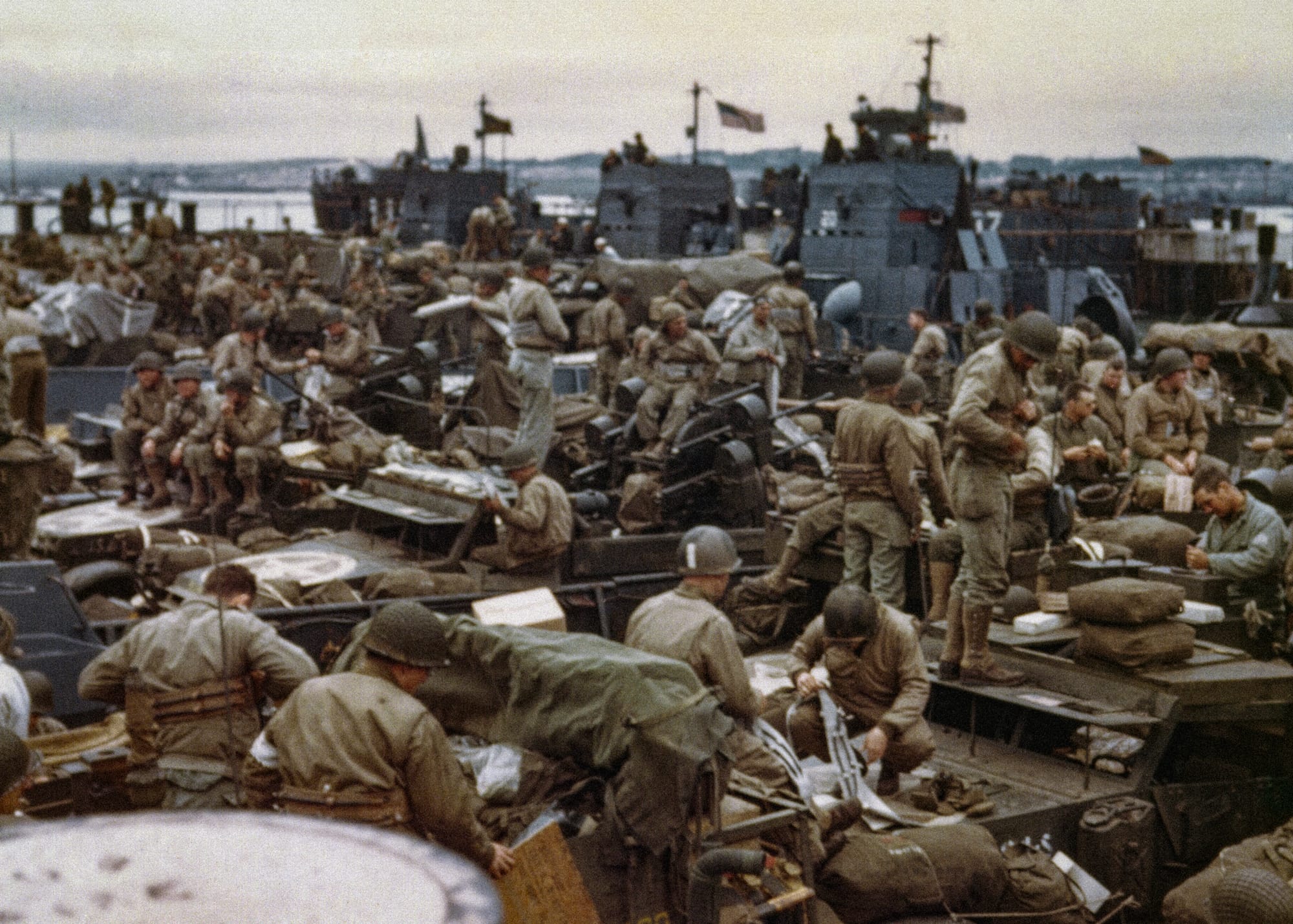 Peter Moore: The scores of soldiers in this photograph, all of them busy and filled with nervous anticipation for what lay ahead, suggest the human scale of Operation Overlord.