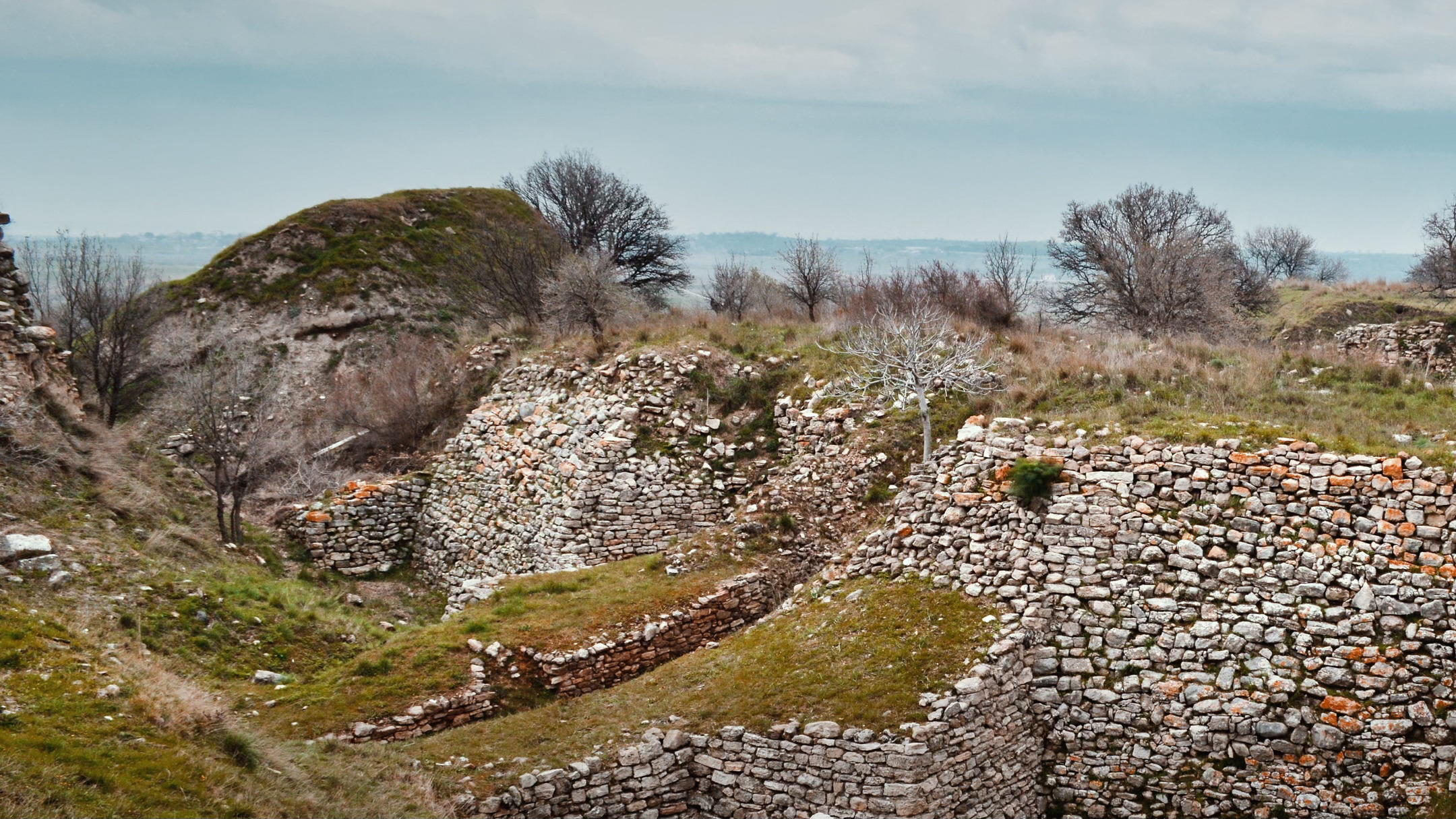 The ruins of the city of Hattusha are a melancholy sight: crumbling walls of grey limestone stand out against the tawny yellow grassland and rocky outcrops of the surrounding hills.