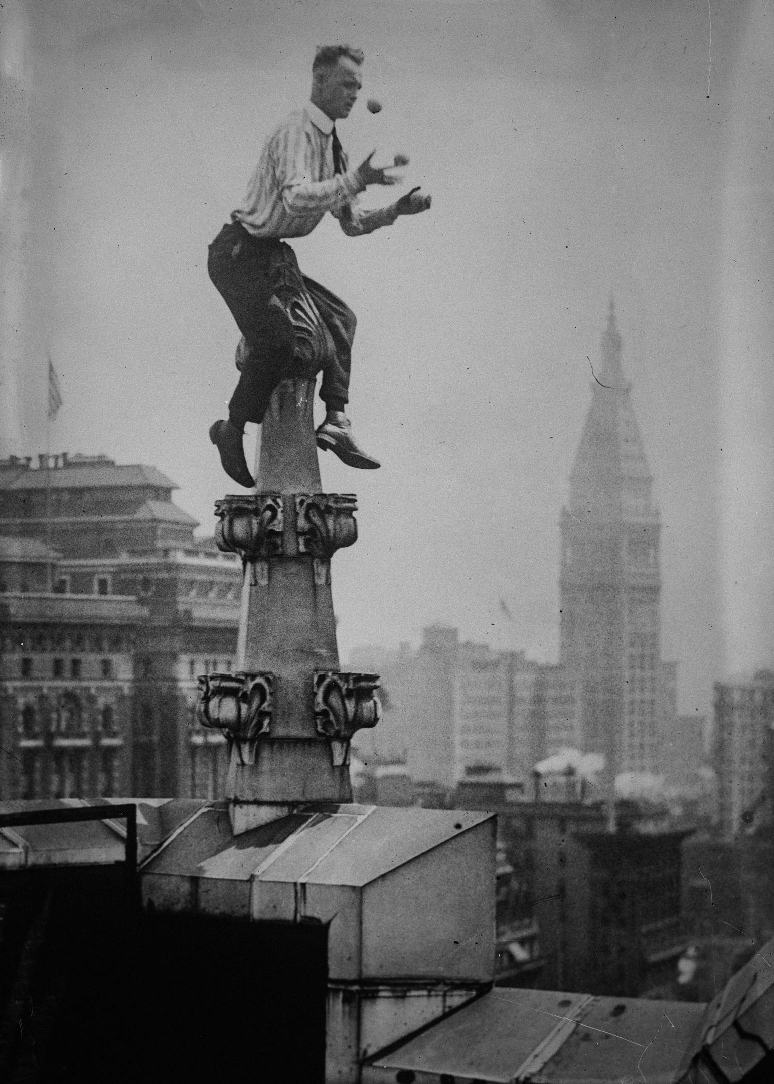 As a crowd of 5,000 watched on, Johnny Reynolds ‘the human fly’ performed a thrilling series of tricks on the roof of a Washington D.C. building on 5 September 1917.