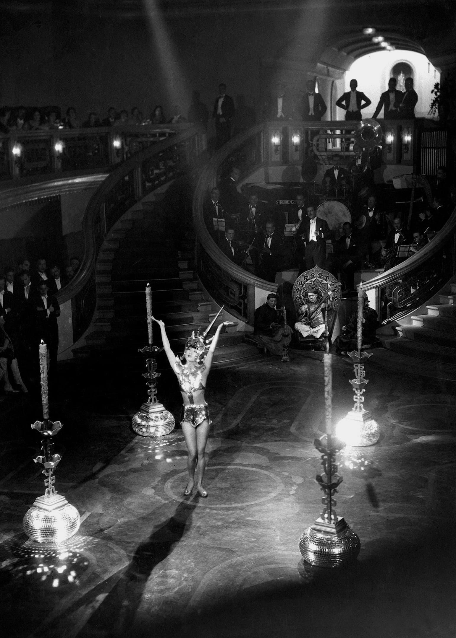All eyes were on her—Anna May, now Shosho—as she began to twist and sway her body. Sometimes briskly with her fingers trilling to the music and her arms unfolding into right angles, echoing the spikes of her crown; at other times languorously slinking across the stage, her hips swinging back and forth. Every movement was cast into stark relief by a kinetic shadow projected onto the stage floor by an overhead spotlight.