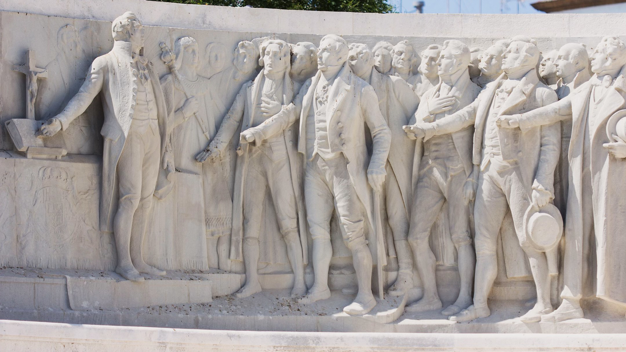 This huge edifice now stands in the Plaza de España, designed by the architect Modesto López Otero and the sculptor Aniceto Mariñas. The monument is adorned with emblematic figures representing the Constitution, War, Peace and Agriculture, with figures of the deputies swearing their loyalty to the Constitution, while an empty chair emphasises the absence of the monarch.